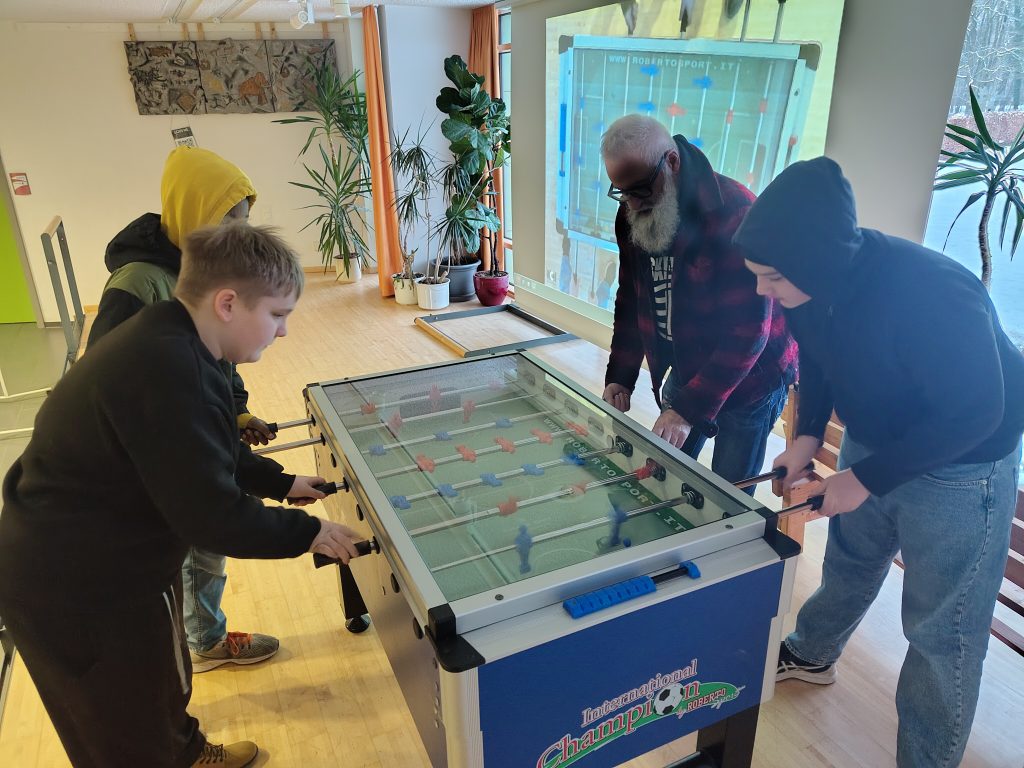 Kurz vor den Zeugnissen fand endlich wieder unser beliebtes Kickerturnier der Klassen 5-9 statt. In vielen fairen und spannenden Spielen ermittelten die Klassen vertreten durch ihre verschiedenen Teams die diesjährigen Kickermeister. Unterstützt durch ihre Fans im Foyer, die die Spiele live gestreamt an der Leinwand verfolgen konnten, entwickelte sich eine tolle und begeisternde Turnieratmospäre. Am Ende konnte sich Klasse 7 in einem hochspannendem Finale knapp gegen die Klasse 9 durchsetzen.