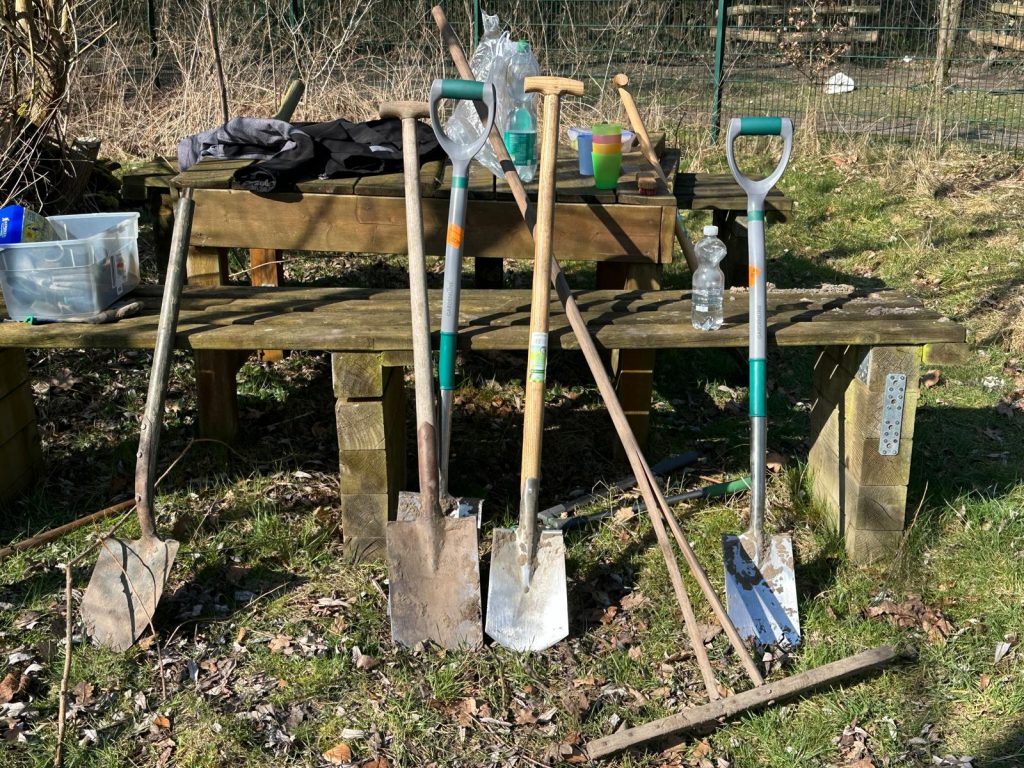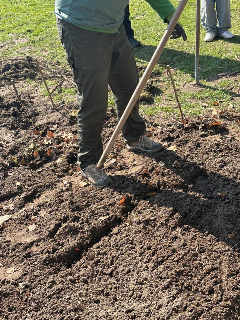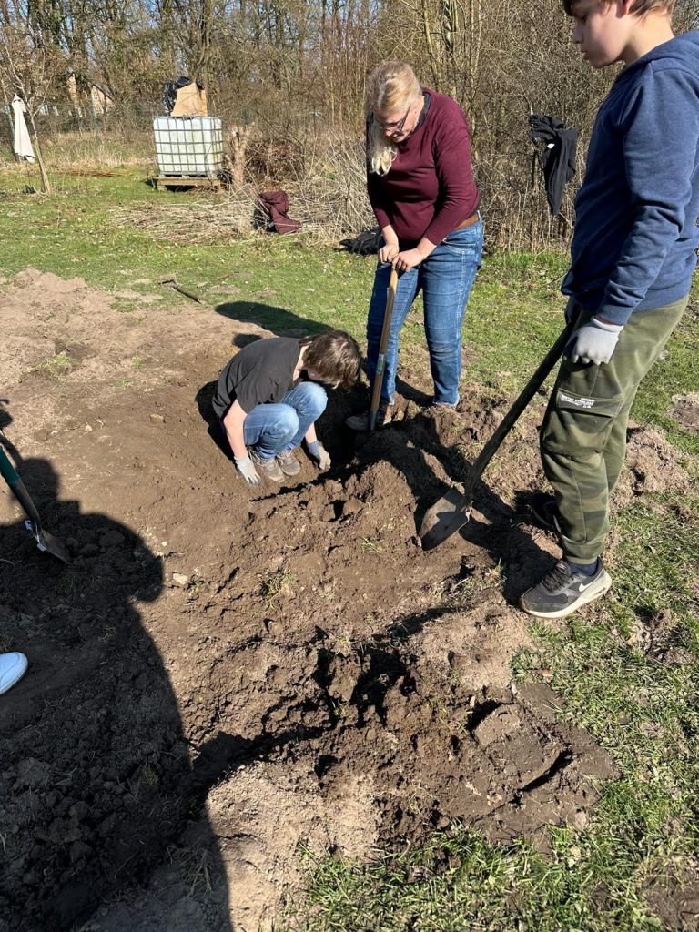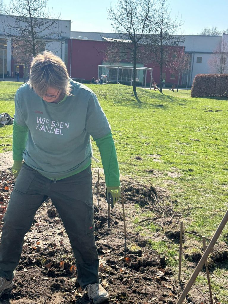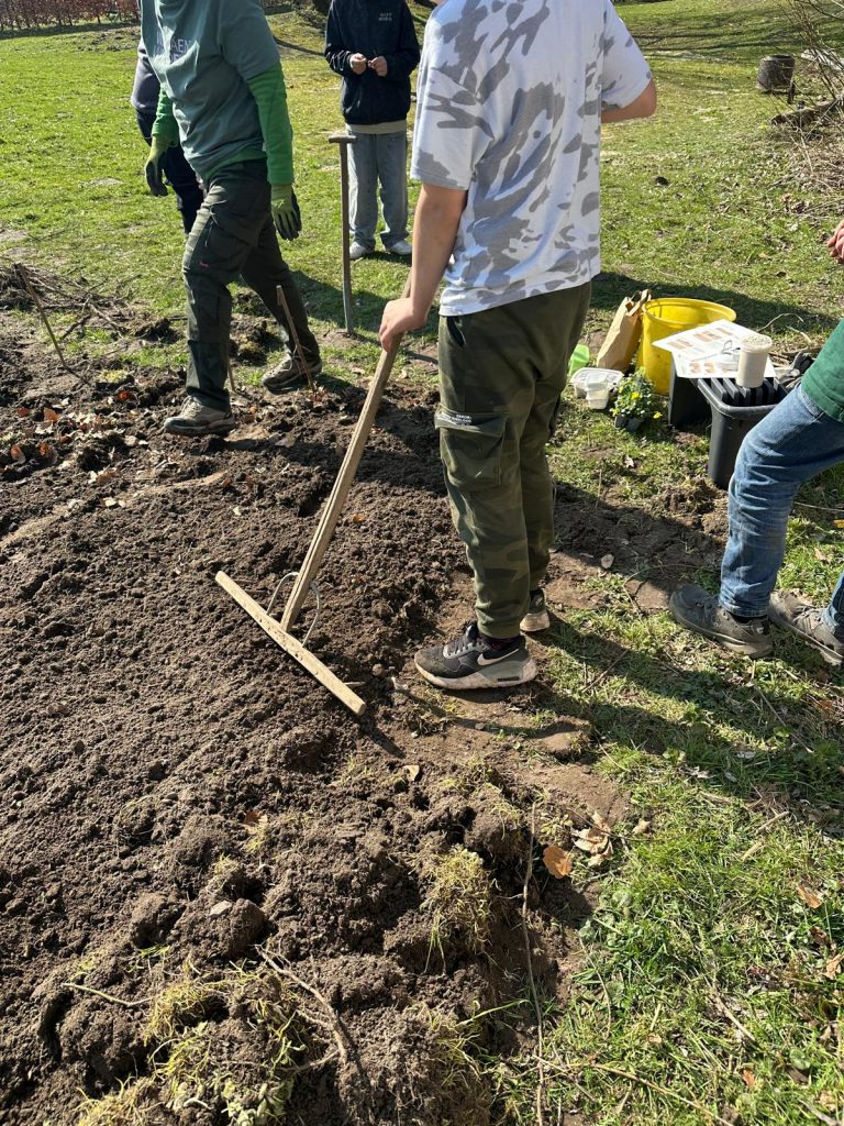 Die Schülerinnen und Schüler übernahmen dabei aktiv Verantwortung: Beete wurden abgesteckt, Erde vorbereitet und erste Pflanzpläne erstellt.