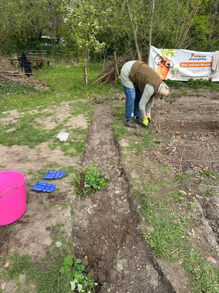 Gepflanzt wurden unter anderem Kartoffeln, rote Beete, Zwiebeln und viele weitere Gemüsesorten. Nun heißt es: regelmäßig gießen, pflegen und beobachten, wie sich die Pflanzen entwickeln. Der Garten entwickelt sich stetig weiter, es gibt noch viel zu tun.