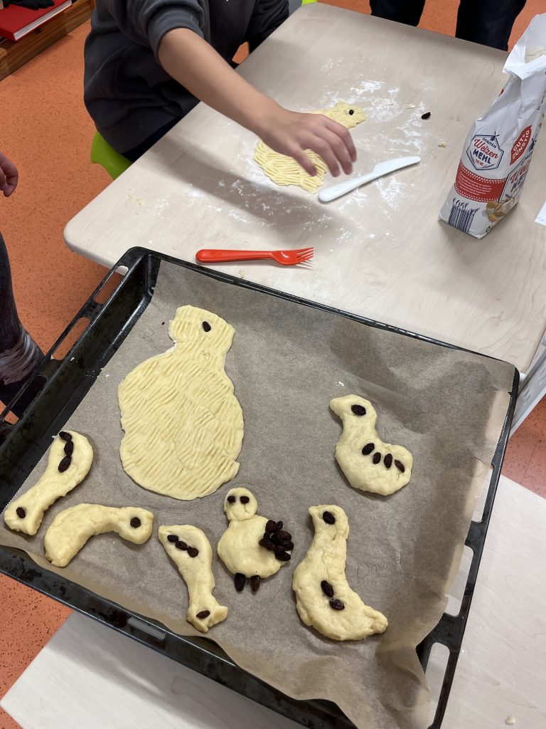 Die Drittklässler haben sich im Religionsunterricht mit dem Thema „St. Martin“ auseinandergesetzt. Zum Schluss haben alle passend zum 11.11. gemeinsam Martinsgänse gebacken. Diese wurden zum Teil an andere in der Schule verschenkt. Die Schüler haben Gutes damit getan, wie St. Martin es damals getan hat.
